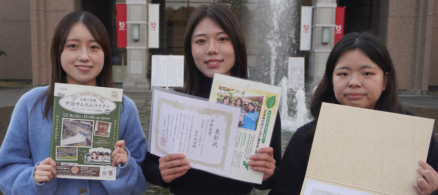 井上:岩嶋先生から「桜の名所でもあるから、お花見がてら足を運んでみては」と薦めてもらったので、3人で行ってみると、ハート型の猪目窓がかわいい正寿院があったり、お茶を使ったスイーツが美味しいカフェがあったり、私たち若い世代も楽しめるスポットがたくさんあって。知られていないなんて、もったいないなと。それで、宇治田原町の魅力を発信できないかとプロジェクトリサーチのテーマすることにしました。