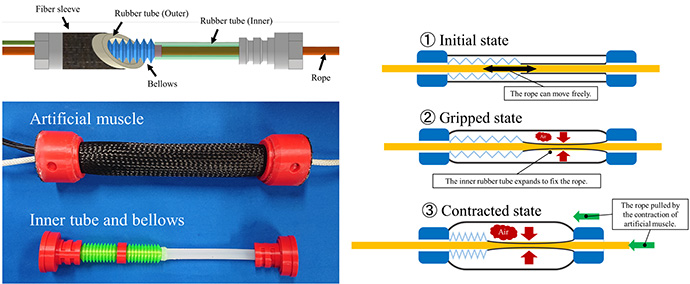 - 手繰り動作を実現する空気圧ゴム人工筋、既存装具をパワーアシストロボット化するベルト部分後付け型人工筋、ソフト脚移動ロボット、農作業用パワーアシストロボット